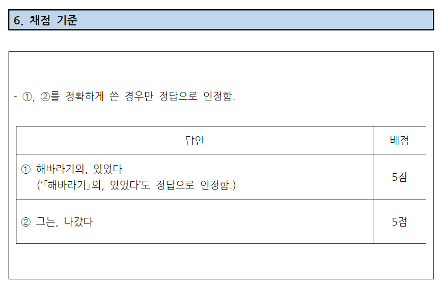 - 문항에서 요구하는 조건에 충실한 답안 - 제시문의 핵심 내용을 정확히 표현한 답안 |