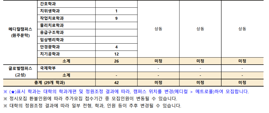 [4년제/강원특별자치도 원주시/고성군/원주시/경기도 양주시] 2024학년도 정시 대비 경동대학교 3