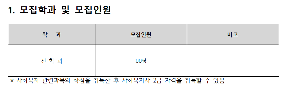 모집학과는 신학과이며, 모집인원은 미정입니다.