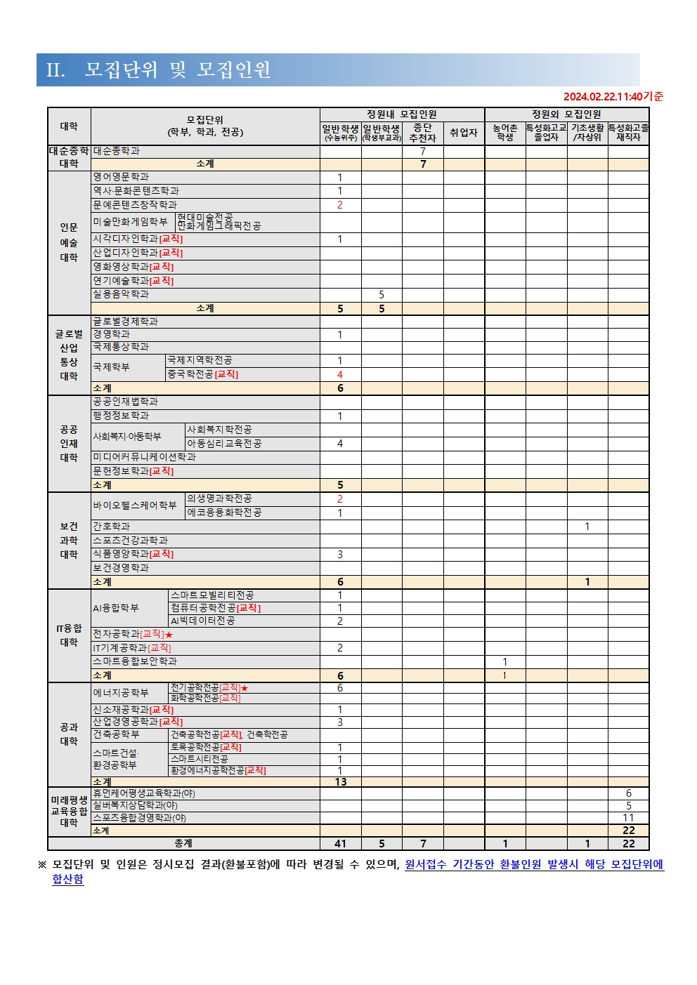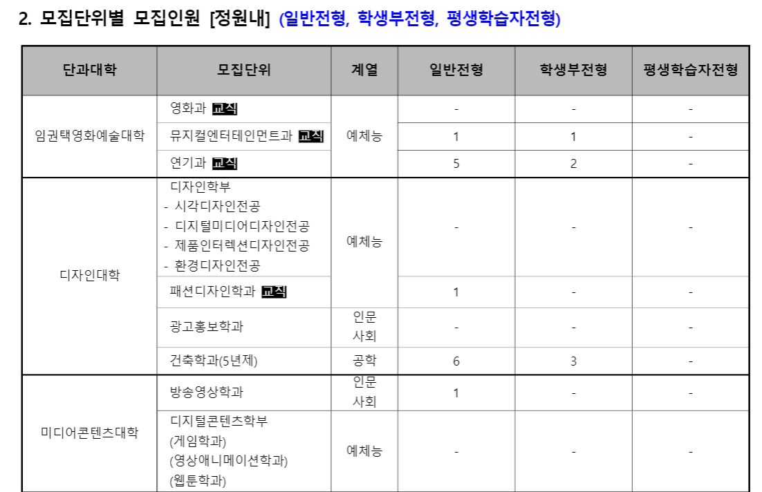모집 학과와 인원은 다음과 같습니다.