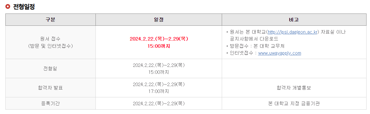 대전신학대학교의 원서접수 기간은 2월 22일 목요일부터 2월 29일 목요일 오후 3시까지입니다.