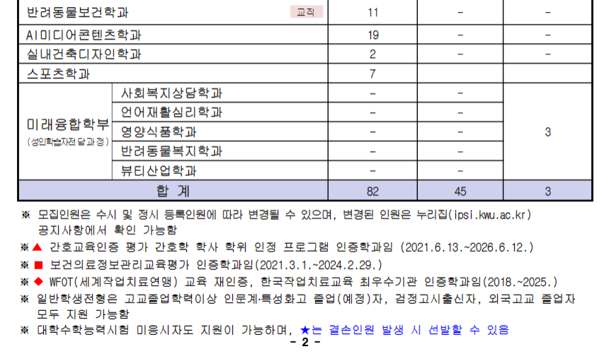 광주여자대학교는 1차 추가모집을 빠르게 마무리 짓고 2차 추가모집을 시작했습니다.