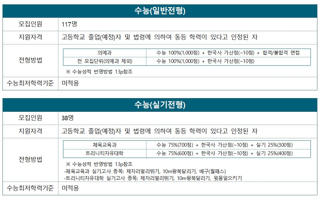 나머지학과는 모두 모집 단위를 통합하여 '트리니티자유대학'으로 모집합니다.