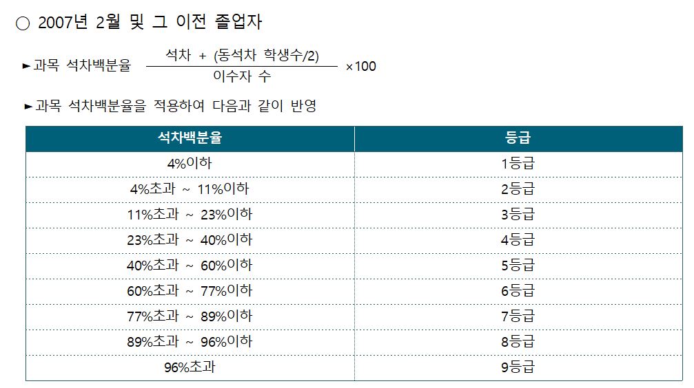 가톨릭관동대학교는 의예과, 간호학과만 석차등급이 있는 전 과목을 반영하며, 나머지 학과는 학년별 석차등급이 우수한 2과목씩만 반영해 최대 24과목만 봅니다.