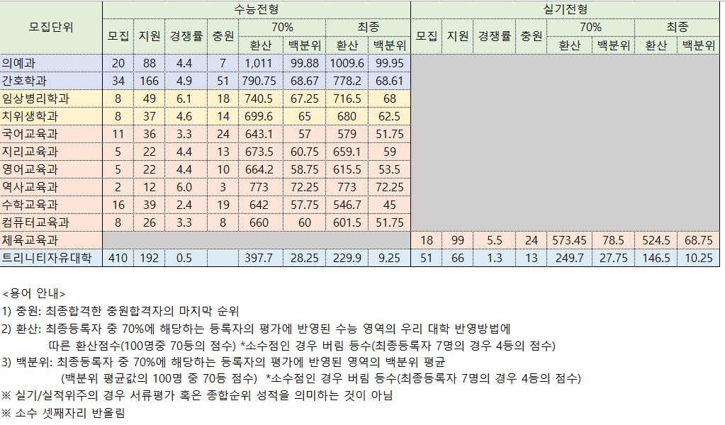 작년 입결을 보면, 트리니티자유대학은 미달이었습니다.