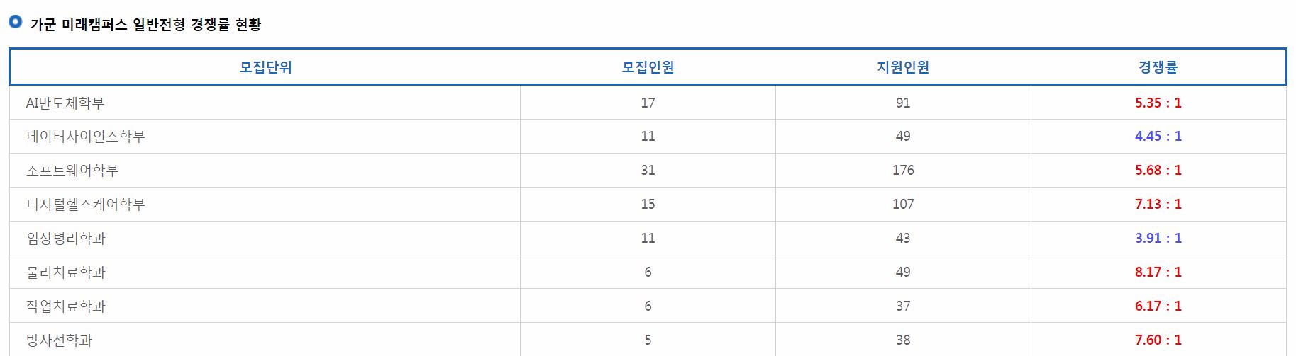 나군 미래캠퍼스 일반전형 경쟁률 현황