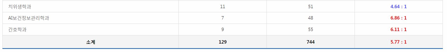 가군 미래캠퍼스 일반전형에서 가장 경쟁률이 높았던 학과는 물리치료학과(8.17:1), 방사선학과(7.60:1), 디지털헬스케어학부(7.13:1) 순이었습니다.