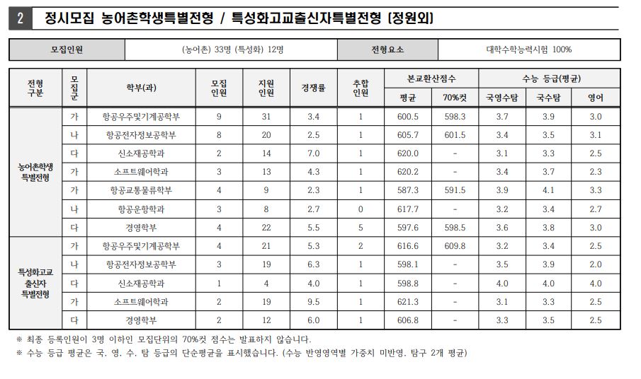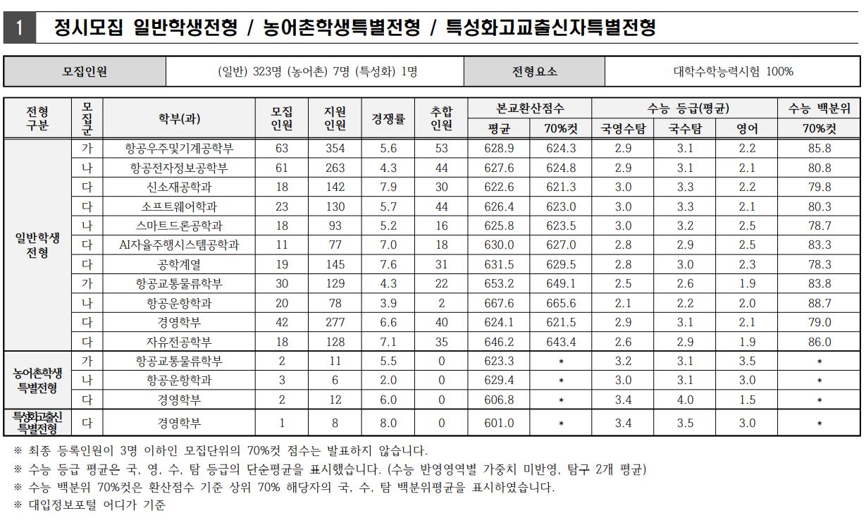 나군 : 항공전자정보공학부, 스마트드론공학과, 항공운항학과, 자유전공학부