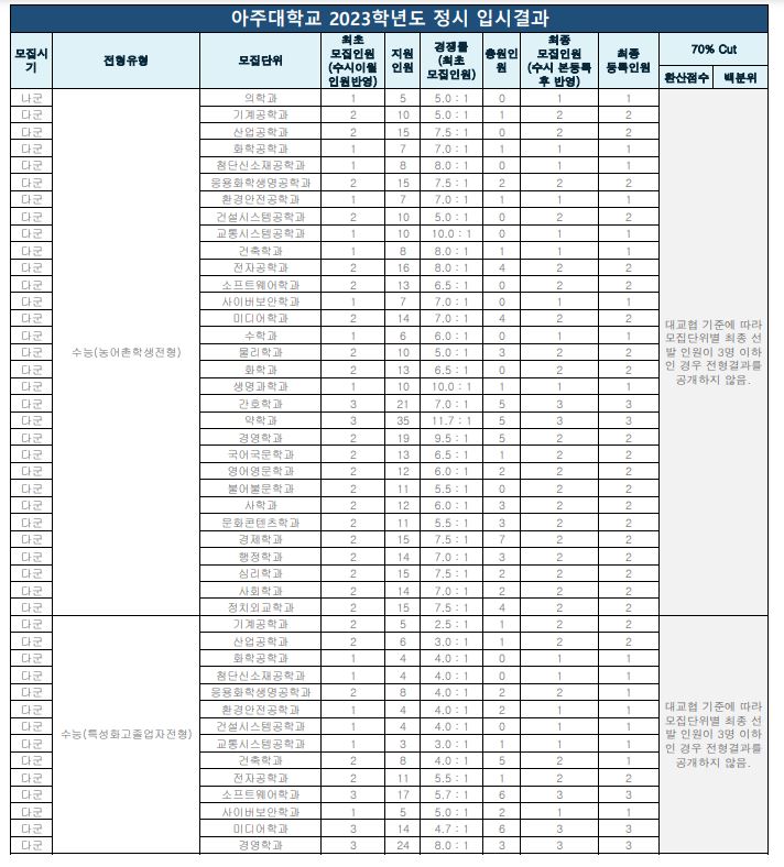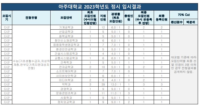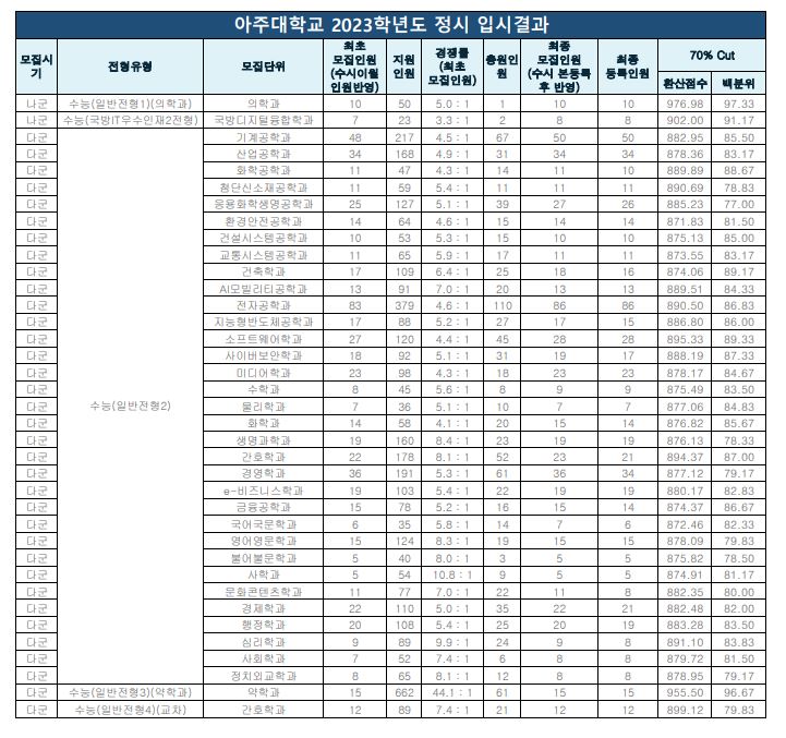 오늘은 아주대학교의 3개년 정시 등급에 대해 포스팅해보도록 하겠습니다.