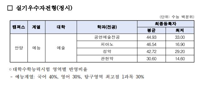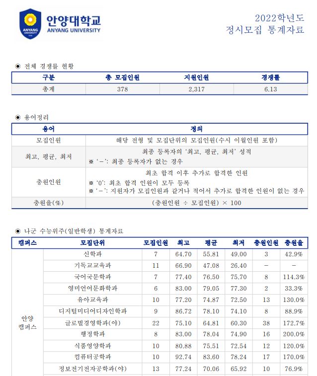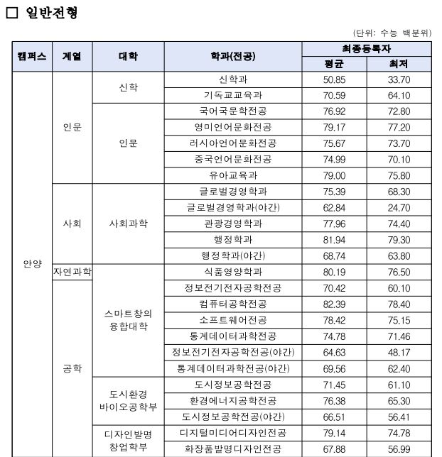 오늘은 안양대학교의 3개년 정시 등급에 대해 포스팅해보도록 하겠습니다.