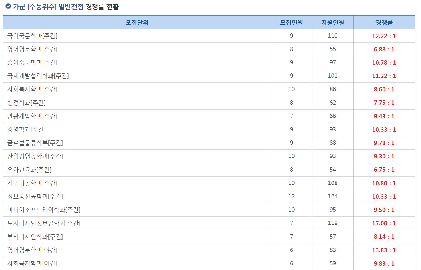 가군 [수능위주] 일반전형 경쟁률 현황