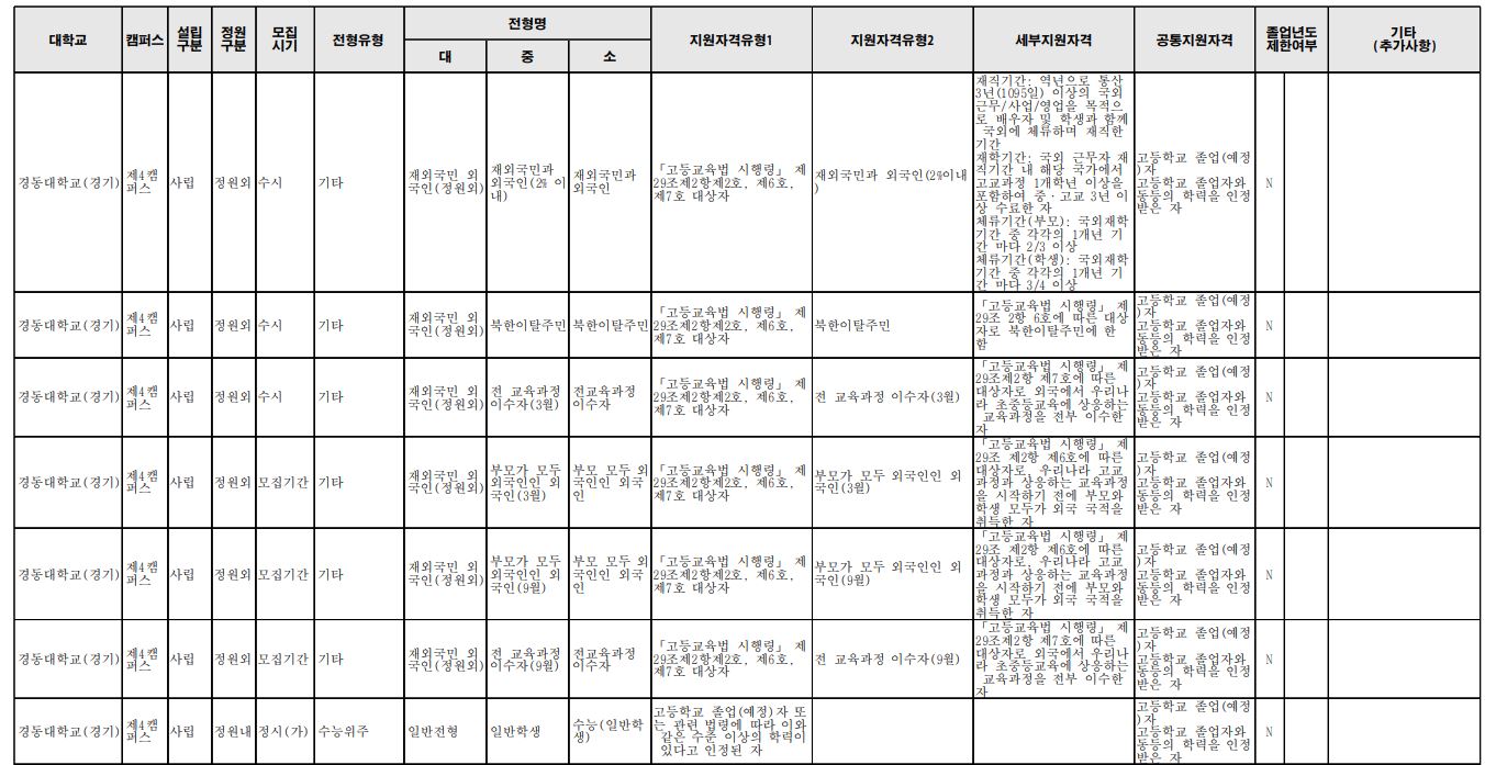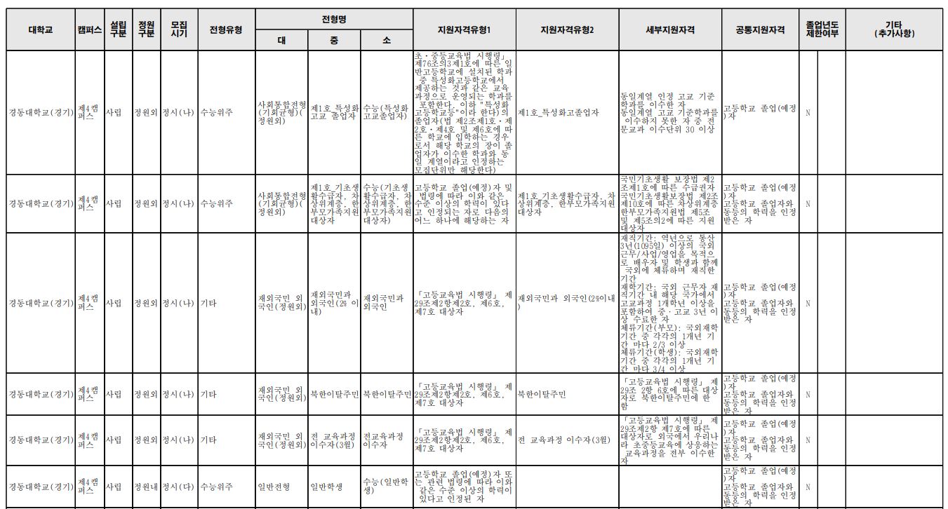 [4년제/강원도 원주시] 경동대학교 글로벌캠퍼스 2025학년도 대학입학전형 시행계획 (0) | 2024.04.19 |