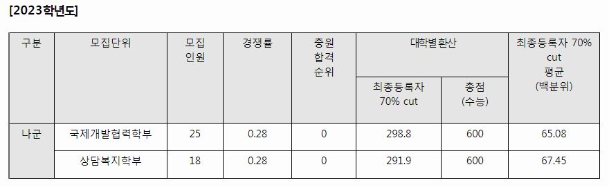 원래 3개년 정시 등급에 대해 포스팅을 하지만, 아신대학교는 작년 정시 등급만을 공개하고 있기 때문에 2023학년도의 자료만을 포스팅하도록 하겠습니다.
