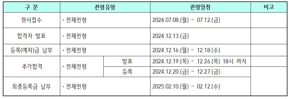 | [4년제/충청북도 청주시] 가톨릭꽃동네대학교 2025학년도 대학입학전형 시행계획 (0) | 2024.03.05 |