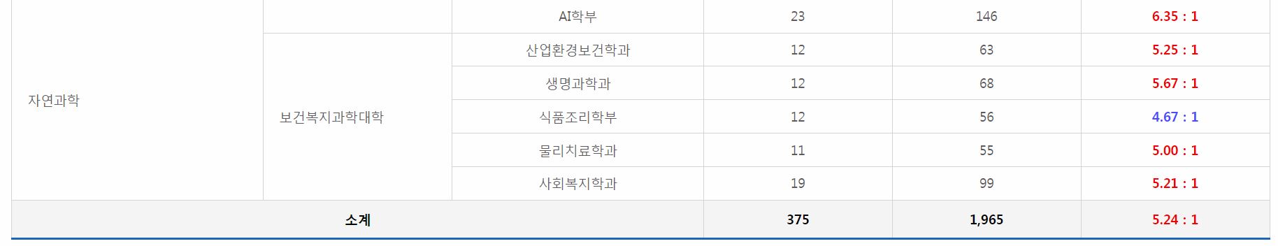 나군 정원외 장애인등대상자 특별전형 경쟁률 현황