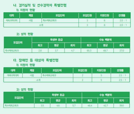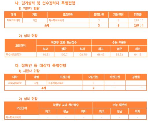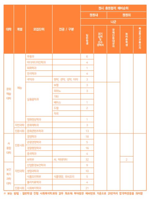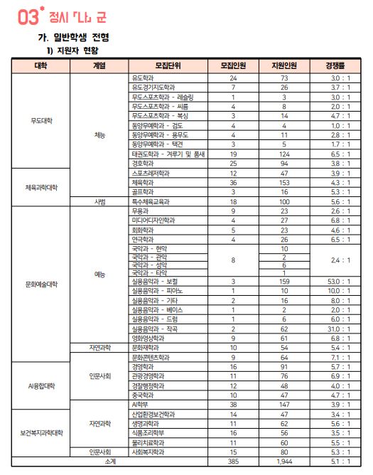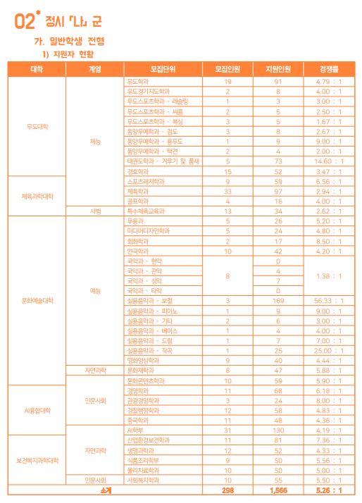현재 용인대학교는 모두 나군에서 학생을 모집하고 있기에 정시 모집 군을 제외하고 경쟁률을 위주로 자료를 보도록 하겠습니다.