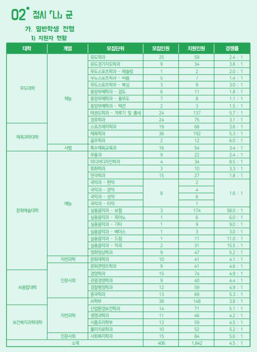 정시 모집 군 : 나군