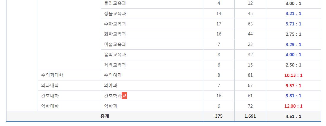 | [4년제/대구광역시/경상북도 상주시] 2024학년도 경북대학교 정시 최종 경쟁률 (0) | 2024.02.03 |