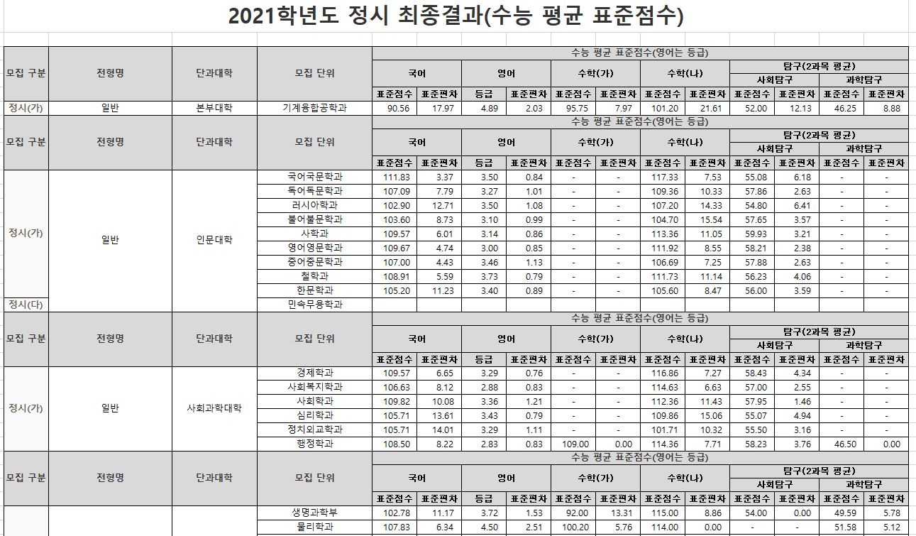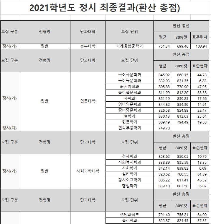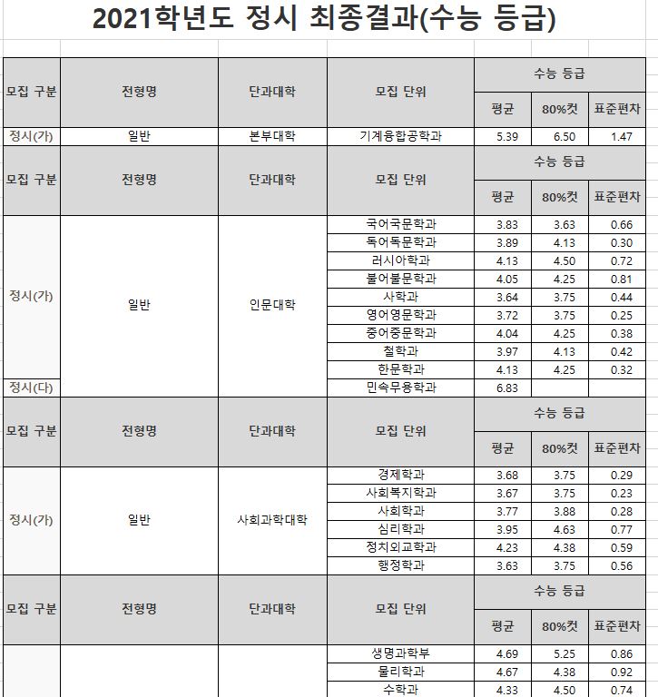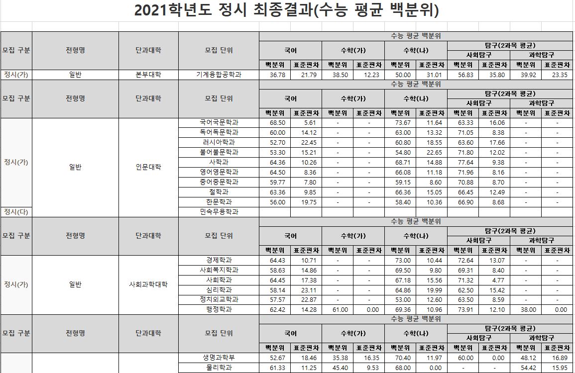 2021학년도는 경상국립대학교와 경남과기대가 합쳐지기 전이기 때문에 입결과 하고가가 많이 다를 수 있습니다. 참고만 해주시기 바랍니다.