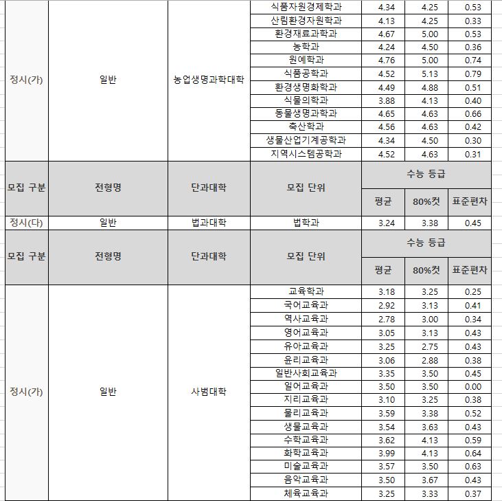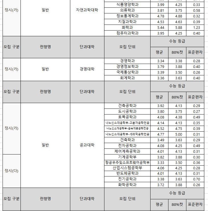 | [4년제/대구광역시/경상북도 상주시] 2024학년도 정시 대비 경북대학교 3개년 정시 등급 (2021~2023년) (0) | 2023.12.21 |