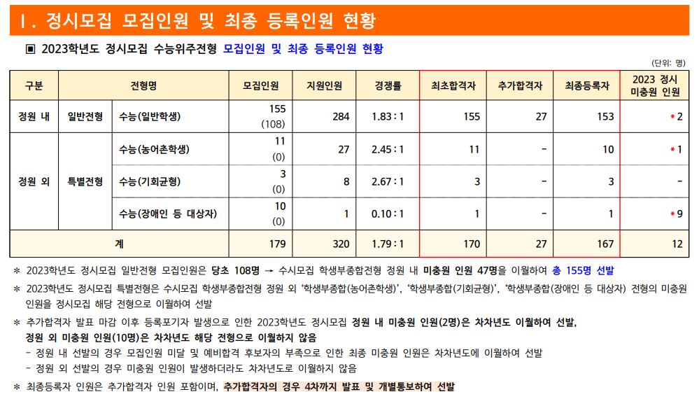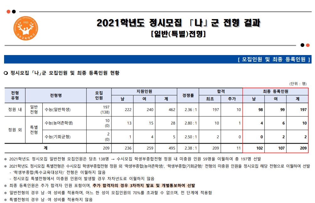 정시 모집 군 : 나군