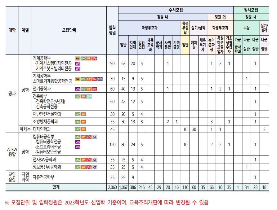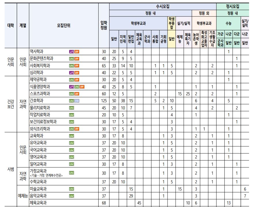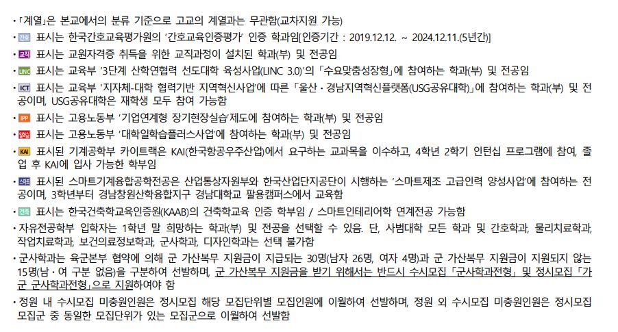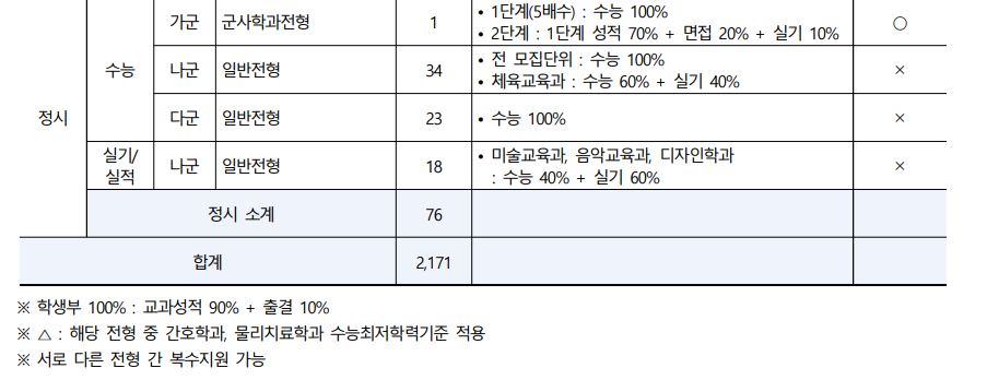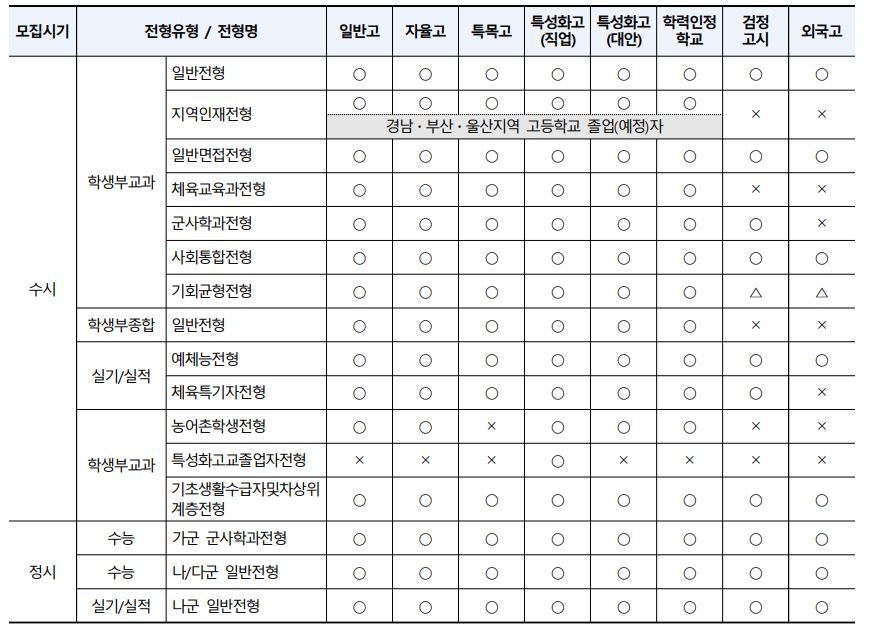 올해 경남대학교의 전형을 한눈에 보면 다음과 같습니다. 뒤에서 하나씩 살펴보도록 하겠습니다.