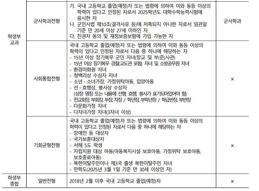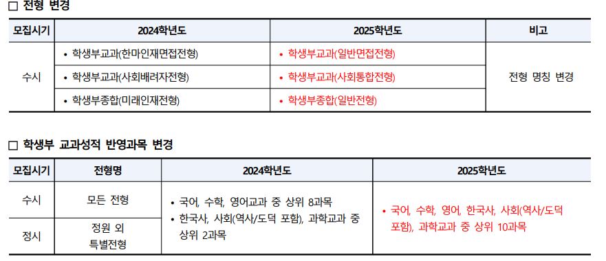 Ⅰ. 2025학년도 대학입학전형 주요사항