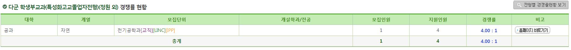 다군 학생부교과(특성화고교졸업자전형)(정원 외) 경쟁률 현황