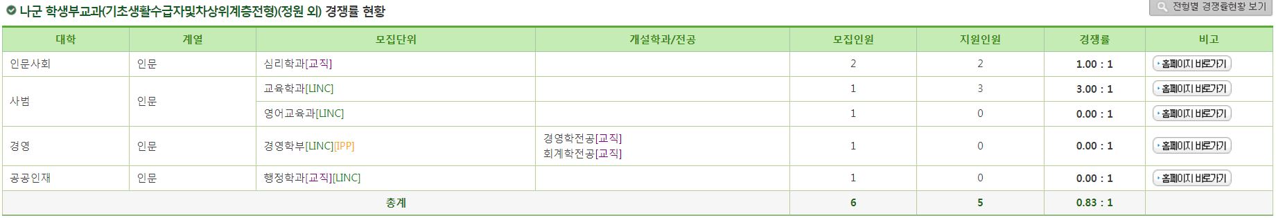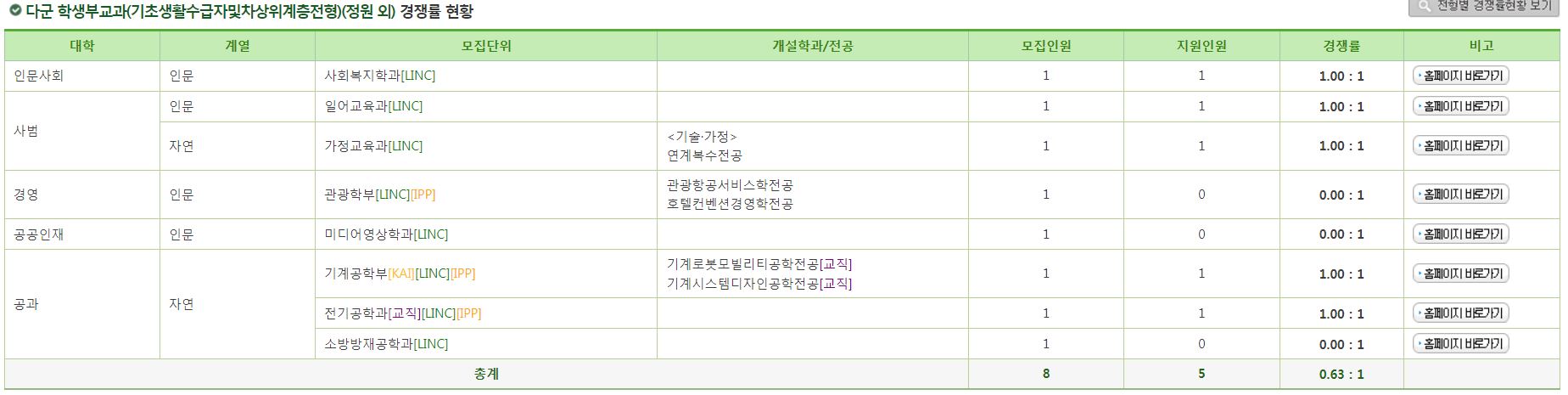 다군 학생부교과(기초생활수급자및차상위계층전형)(정원 외) 경쟁률 현황