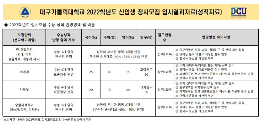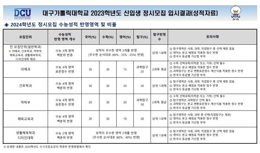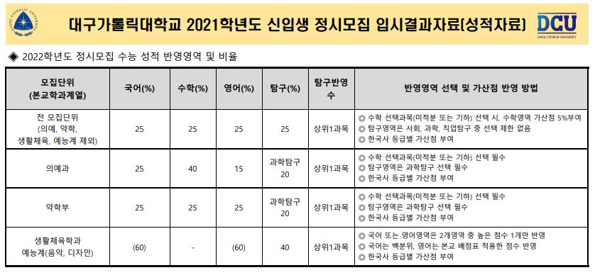 오늘은 대구가톨릭대학교의 3개년 정시 등급에 대해 포스팅해보도록 하겠습니다.