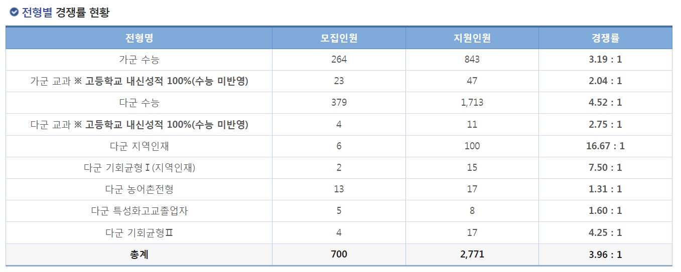 | [4년제/서울특별시] 2024학년도 동덕여자대학교 최종 정시 경쟁률 (0) | 2024.02.06 |