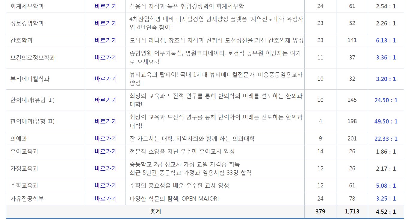 | [4년제/경기도 포천시] 2024학년도 대진대학교 최종 정시 경쟁률 (0) | 2024.02.06 |