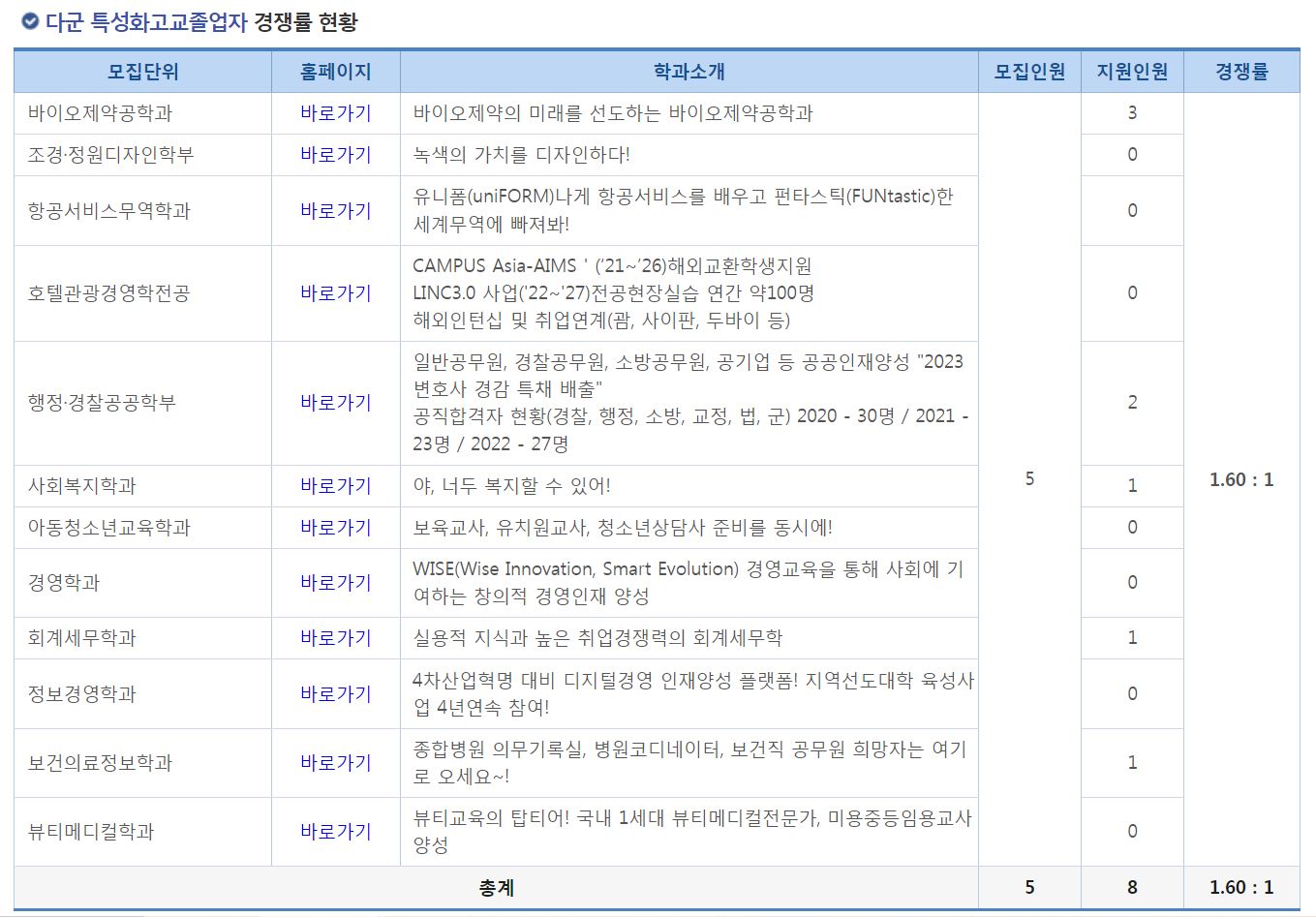 다군 특성화고교졸업자전형 역시 학과를 통합 모집했으며, 경쟁률은 1.60:1 이었습니다.