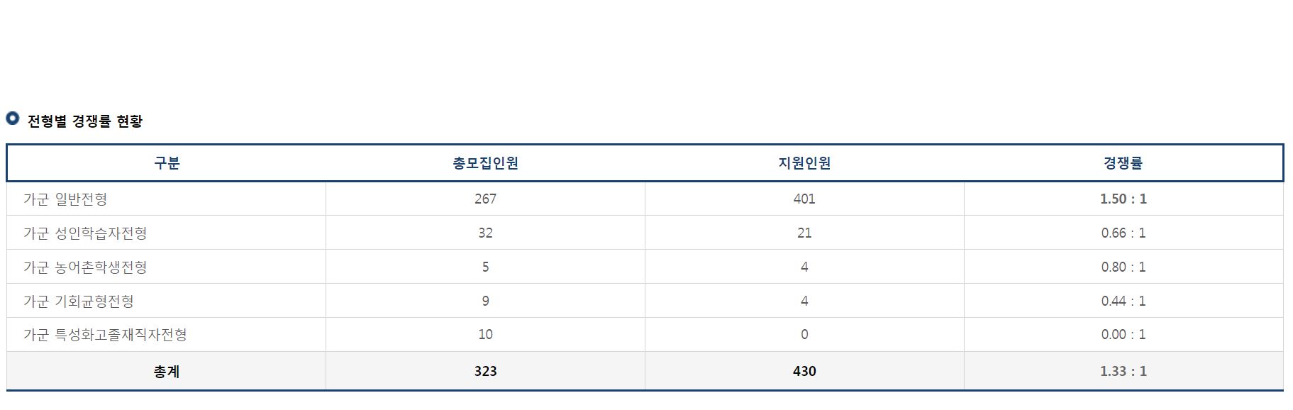 가군 성인학습자전형 경쟁률 현황
