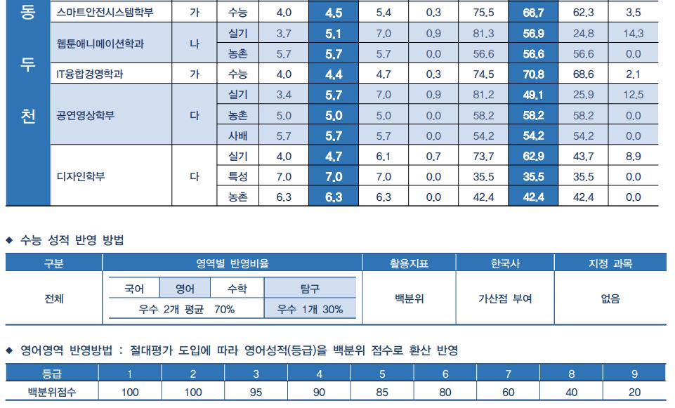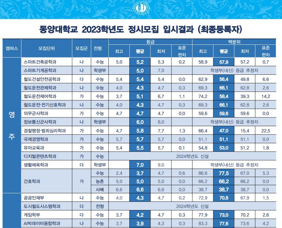 원래는 3개년 정시 등급을 올리지만, 동양대학교에서는 작년 정시 등급만을 공개하고 있어 2023학년도 정보만을 포스팅합니다.
