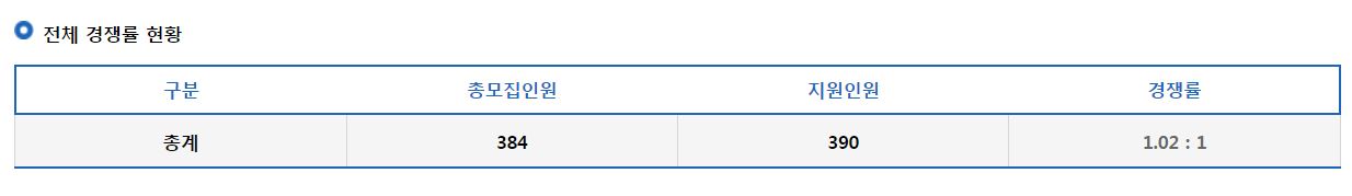 전체 경쟁률을 먼저 살펴보자면 1.02:1 이었습니다.