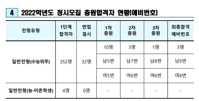 정시 모집 군 : 나군