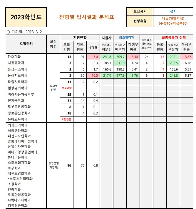 정시 모집 군 : 나군