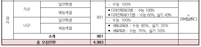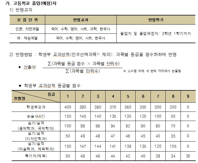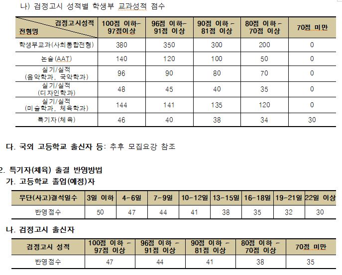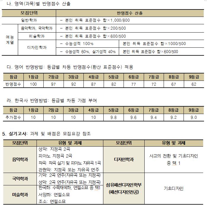 또한, 예능계열은 수능에서 수학 성적을 반영하지 않습니다