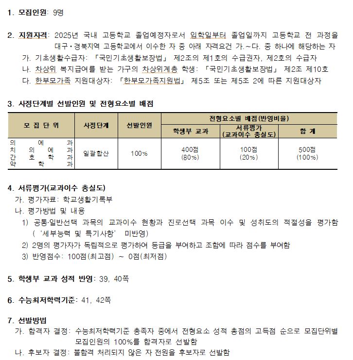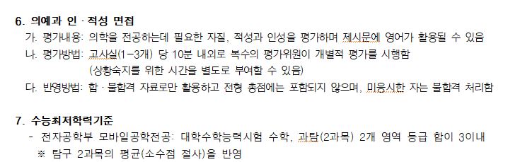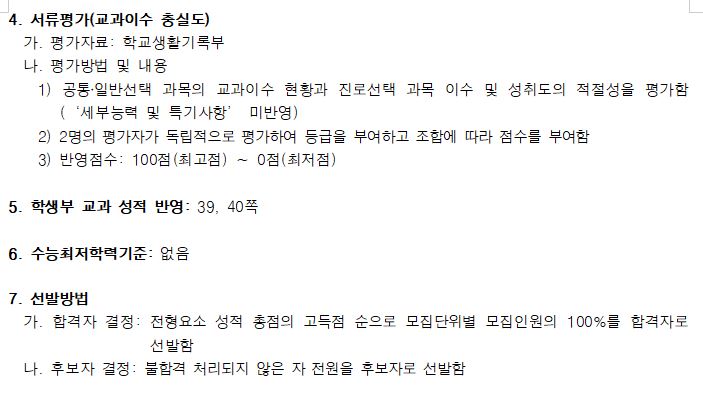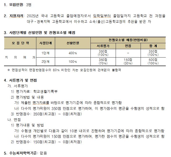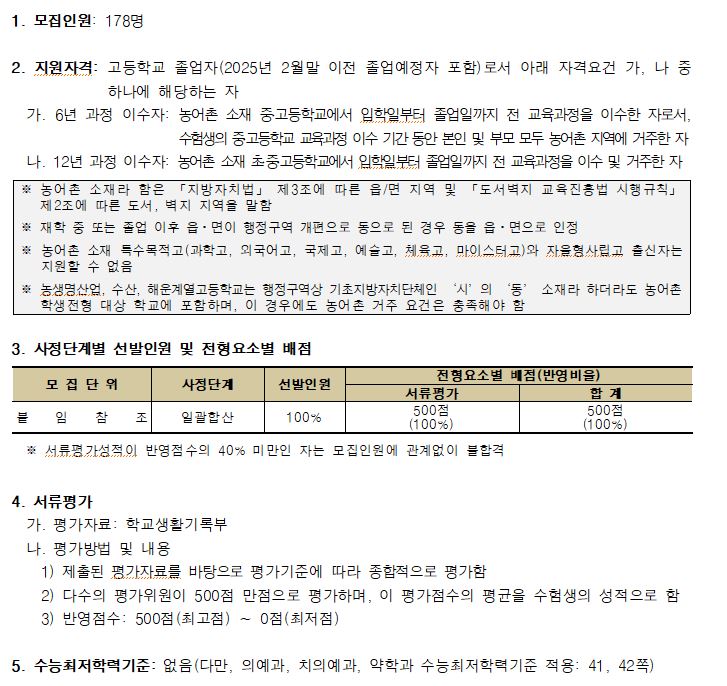 농어촌학생전형은 면접 따로 없이 서류만 진행하며, 의예과, 치의예과, 약학과를 제외하고는 최저학력기준이 없습니다.