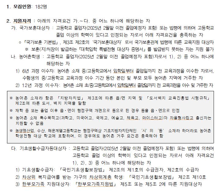 사회통합전형은 국가보훈대상자, 농어촌학생, 기초생활수급자등대상자가 지원 가능합니다.