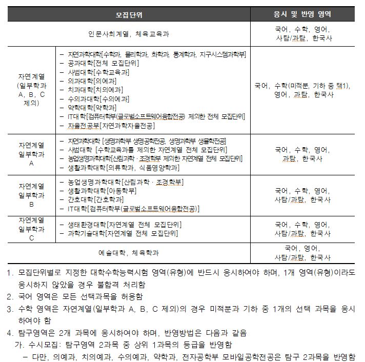 Ⅶ. 대학수학능력시험 지정 응시영역(수시, 정시)