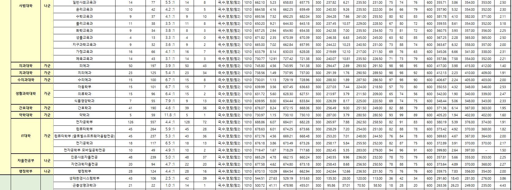 입시정보/정시 대비 3개년 4년제 정시 입결