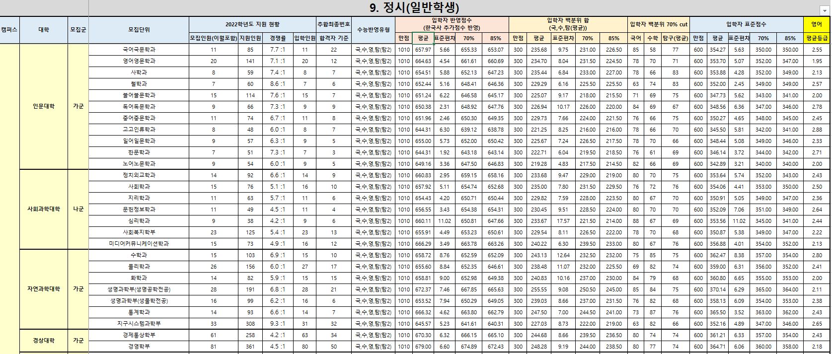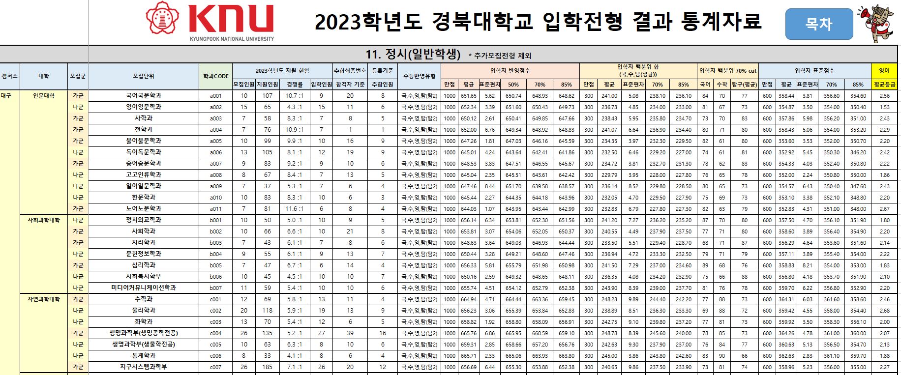 오늘은 경북대학교의 3개년 정시 등급에 대해 알아보도록 하겠습니다.