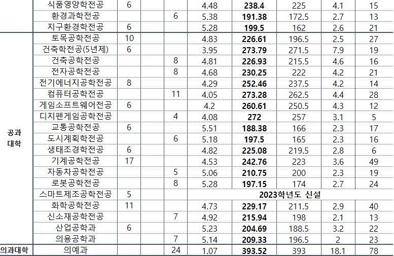 가장 경쟁률이 높았던 학과는 의예과(12.6:1), 간호학과(7.3:1), 전기에너지공학전공(7.1:1) 순이었습니다.