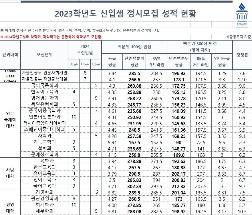 오늘은 계명대학교 3개년 정시 등급에 대해 포스팅해보도록 하겠습니다.