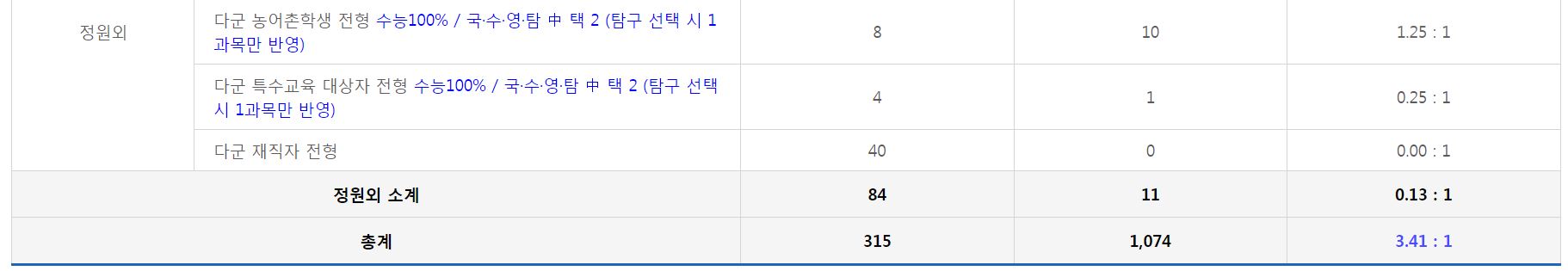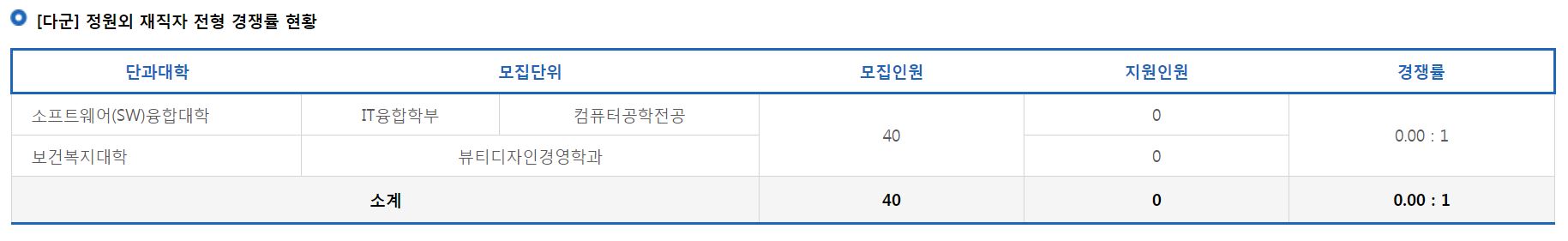 [다군] 정원외 재직자 전형 경쟁률 현황