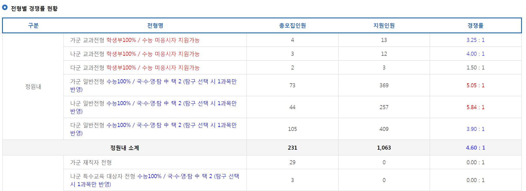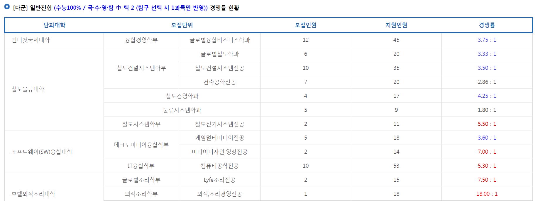 [다군] 일반전형 경쟁률 현황