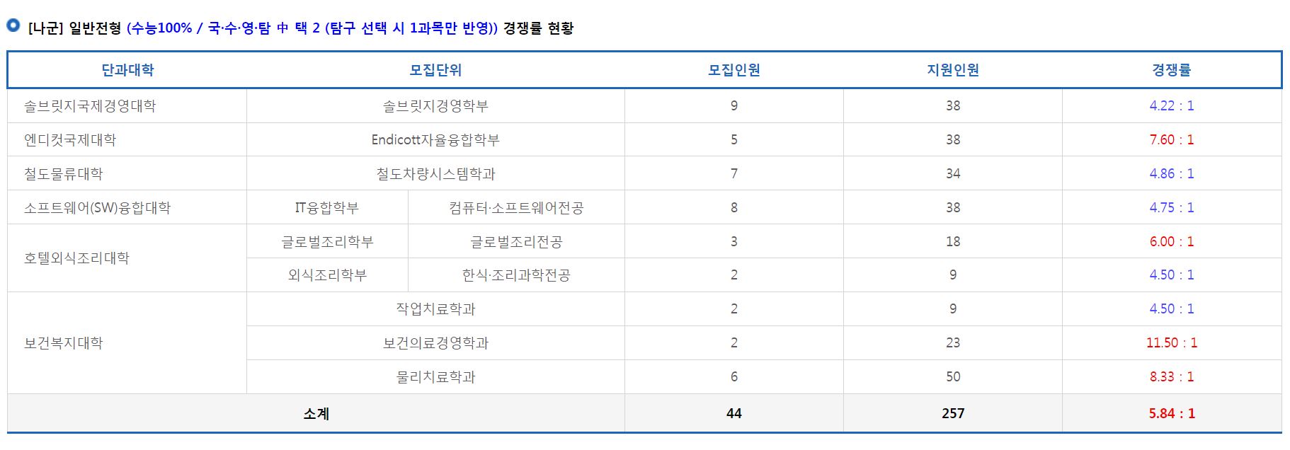 [나군] 일반전형 경쟁률 현황