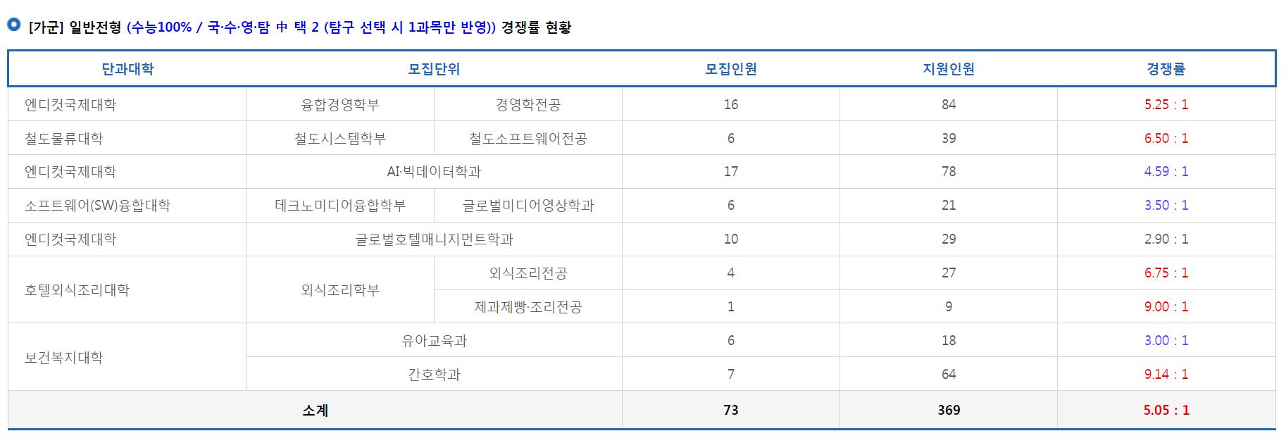 [가군] 일반전형 경쟁률 현황